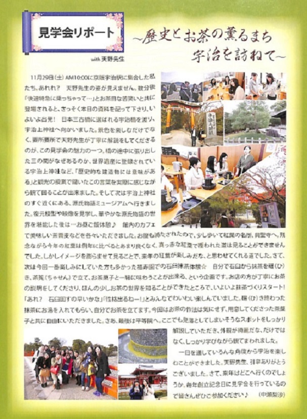 ホームページ>このページ>flora編集委員会>学部紀要>教員ホームページ>奨学金>会長挨拶>取材日記>専門学会>学生研究会の紹介