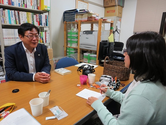 若手のイケメン先生に・・・ワクワク(*^_^*) 研究室をお伺いし、飼い猫の話で取材スタートでした。 |
